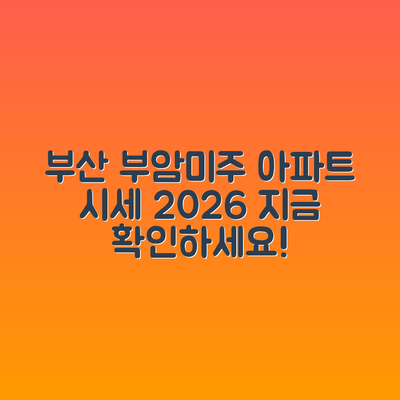 여러분, 부동산 시장에 대한 이야기 많이 들어보셨죠? 특히 부산시 부산진구 부암동의 부암미주 아파트는 어떻게 될까요? 2026년 1월 시세를 예상하는 것은 많은 사람들에게 흥미로운 주제입니다.